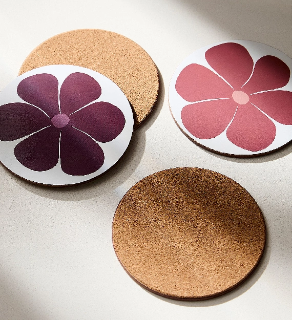 Crafted with sturdy cork bases, the Flowers Laminated Cork Coasters provide excellent grip and heat resistance, ensuring your furniture stays safe from moisture, stains, and scratches. Lightweight yet durable, they’re easy to clean and store, making them ideal for everyday use or entertaining guests. Whether used individually or as a set, these coasters bring color, charm, and practicality to any space.