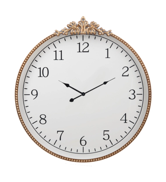 The Gold Round Ornate Frame Wall Clock is a timeless piece that blends elegance and functionality, making it the perfect addition to any home décor. Designed with a beautifully detailed ornate frame in a rich gold finish, this clock exudes a vintage charm while adding a touch of luxury to your walls. The round silhouette and intricate carvings enhance its classic appeal, making it a striking focal point whether placed in a living room, dining area, or entryway. Its large, easy-to-read face ensures you can keep track of time at a glance, while the graceful hands move smoothly for precise timekeeping.