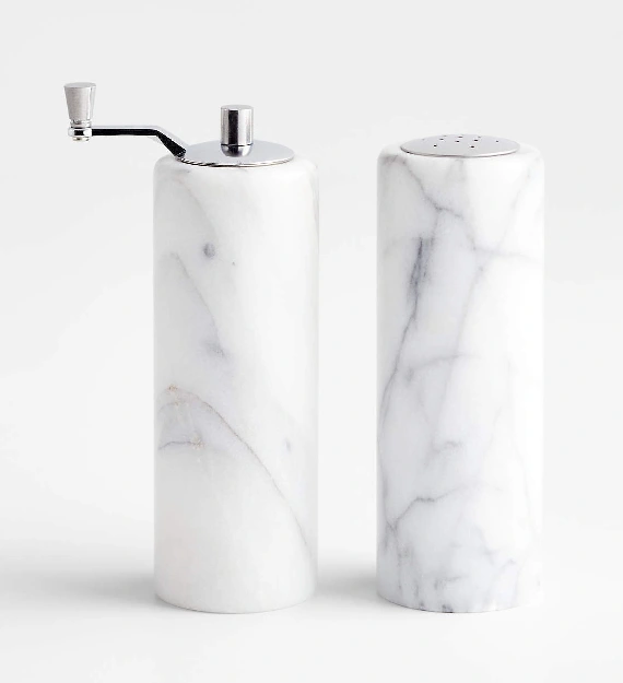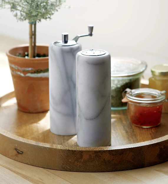 The Kitchen Marble Salt and Pepper Set is a sleek and stylish addition to any dining table or countertop. Crafted from premium marble, this set combines durability with timeless elegance, making it a functional yet decorative accent for your kitchen. Its smooth finish and natural stone patterns add a touch of sophistication while keeping your favorite seasonings within easy reach.