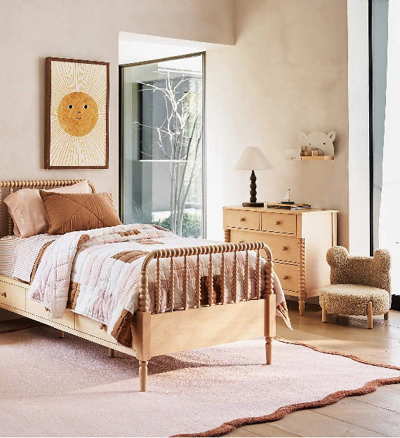 Its vibrant pattern brings warmth and personality to the room, making it a cheerful focal point for bedrooms, playrooms, or nurseries.